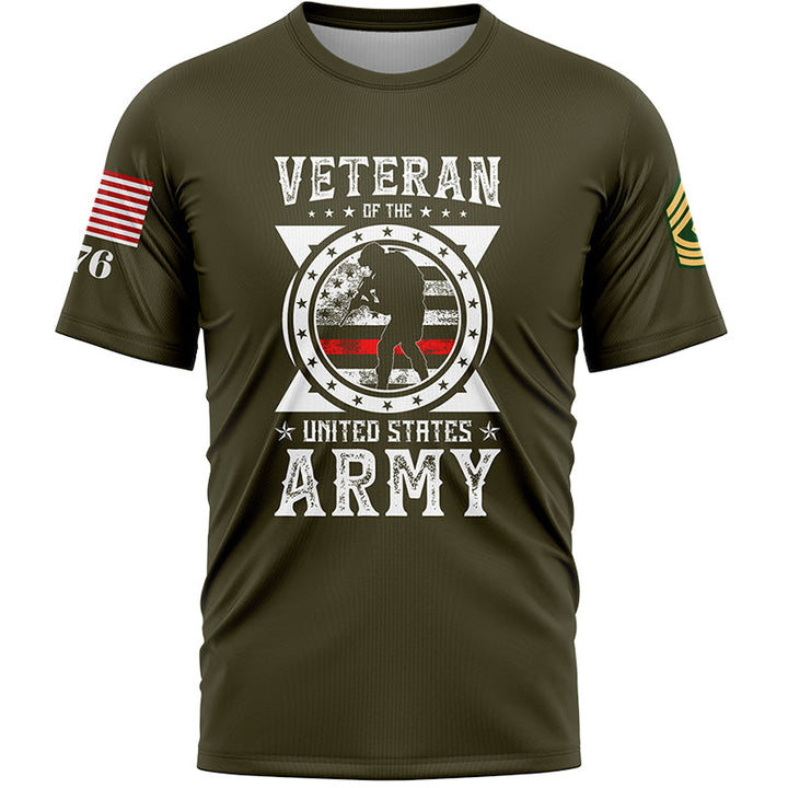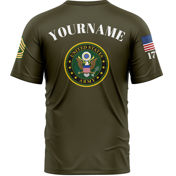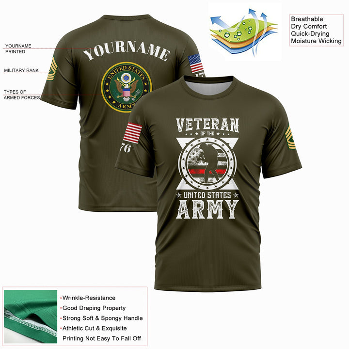 Custom Olive Veteran 1776 American Flag U.S Army Military Rank Name T-Shirt