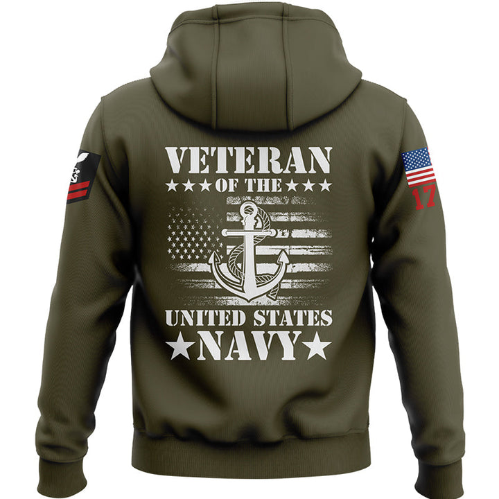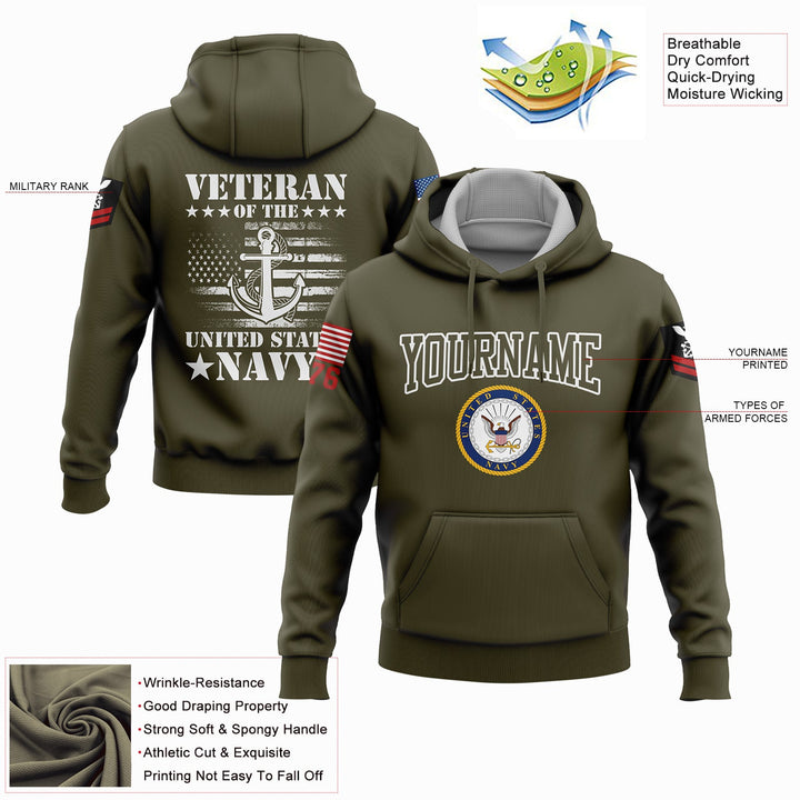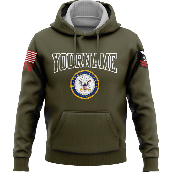 Custom Olive Veteran 1776 American Flag U.S Navy Military Rank Name Hoodie