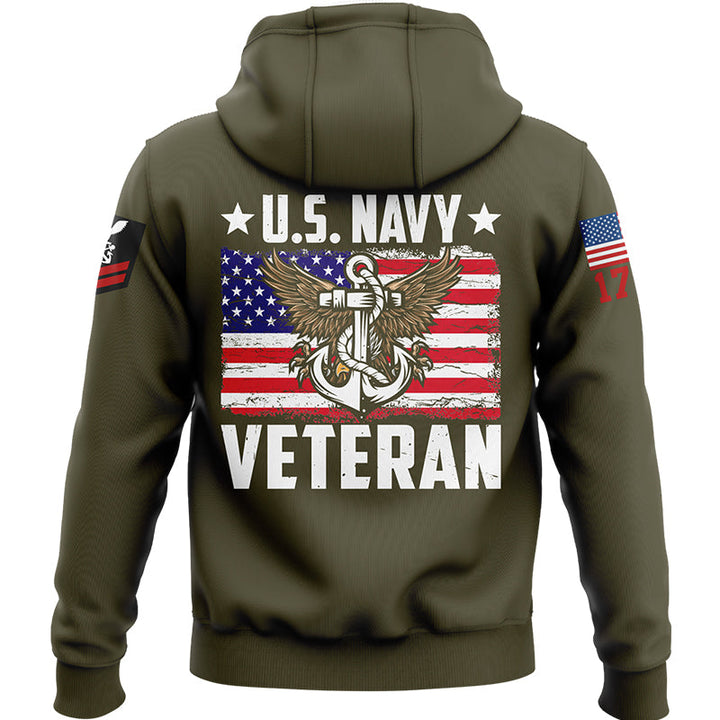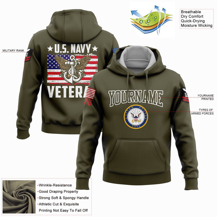 Custom Olive Veteran 1776 American Flag U.S Navy Military Rank Name Hoodie