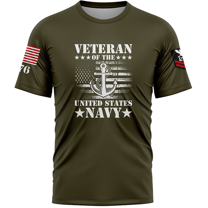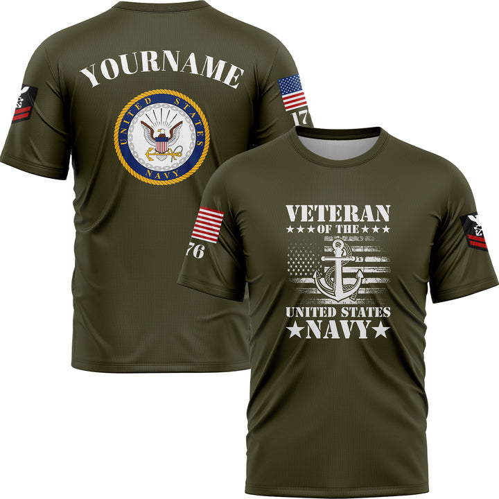 Custom Olive Veteran 1776 American Flag U.S Navy Military Rank Name T-Shirt