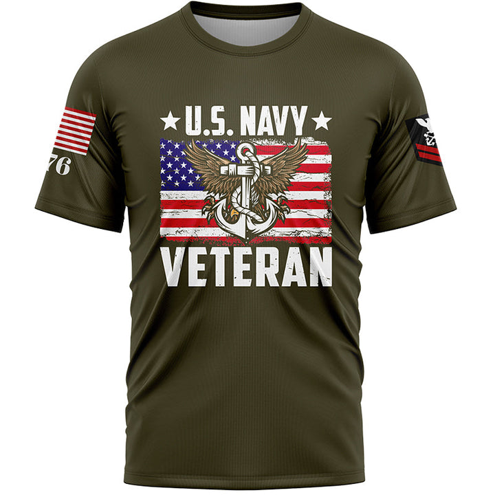 Custom Olive Veteran 1776 American Flag U.S Navy Military Rank Name T-Shirt