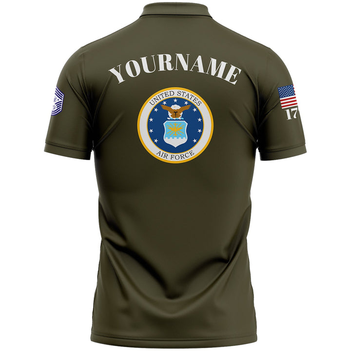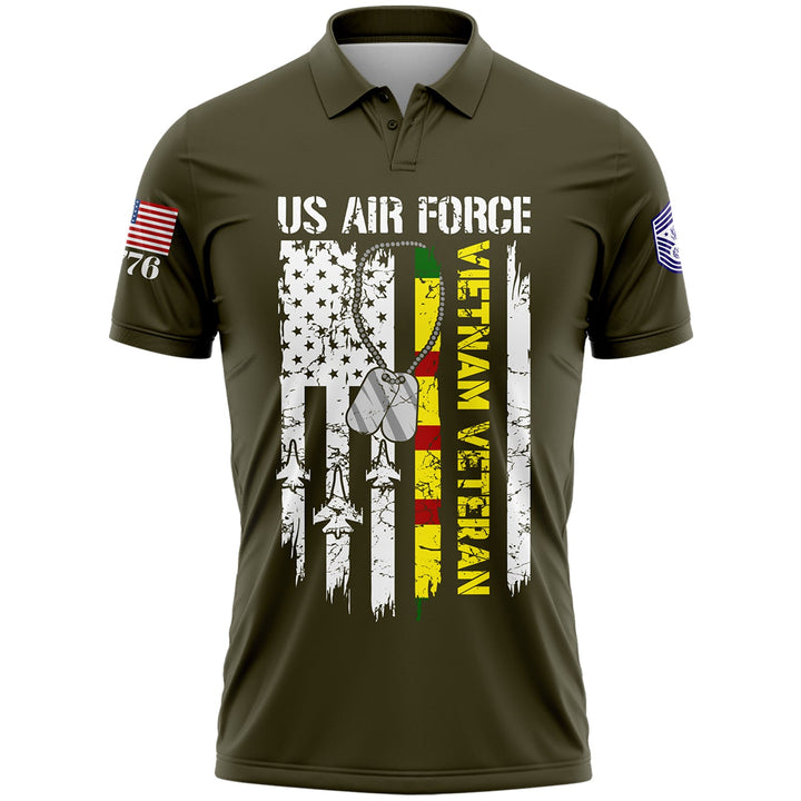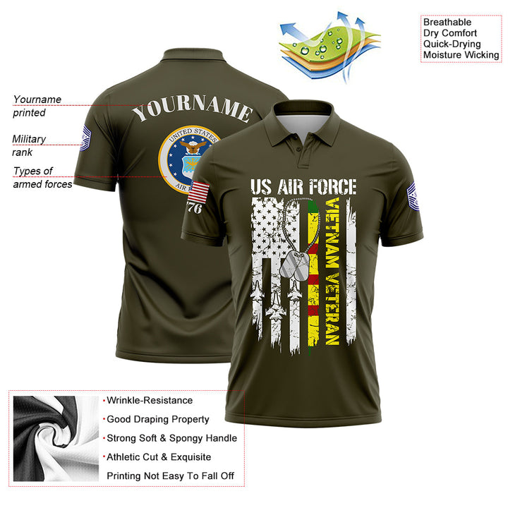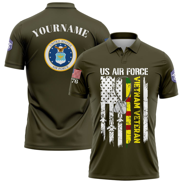 Custom Olive Vietnam Veteran 1776 American Flag U.S Air Force Military Rank Name Veterans Day Golf Polo Shirt