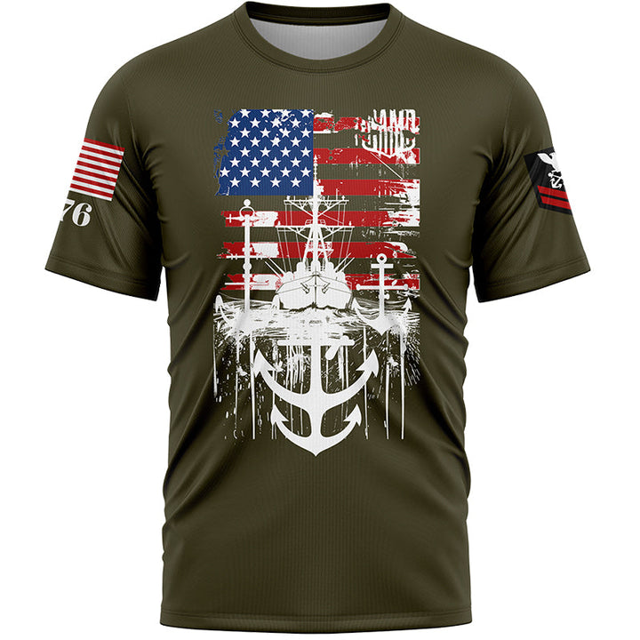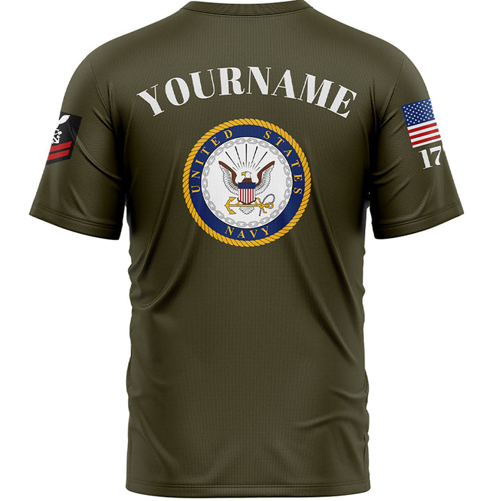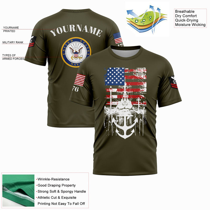 Custom Olive Warship 1776 American Flag U.S Navy Military Rank Name T-Shirt
