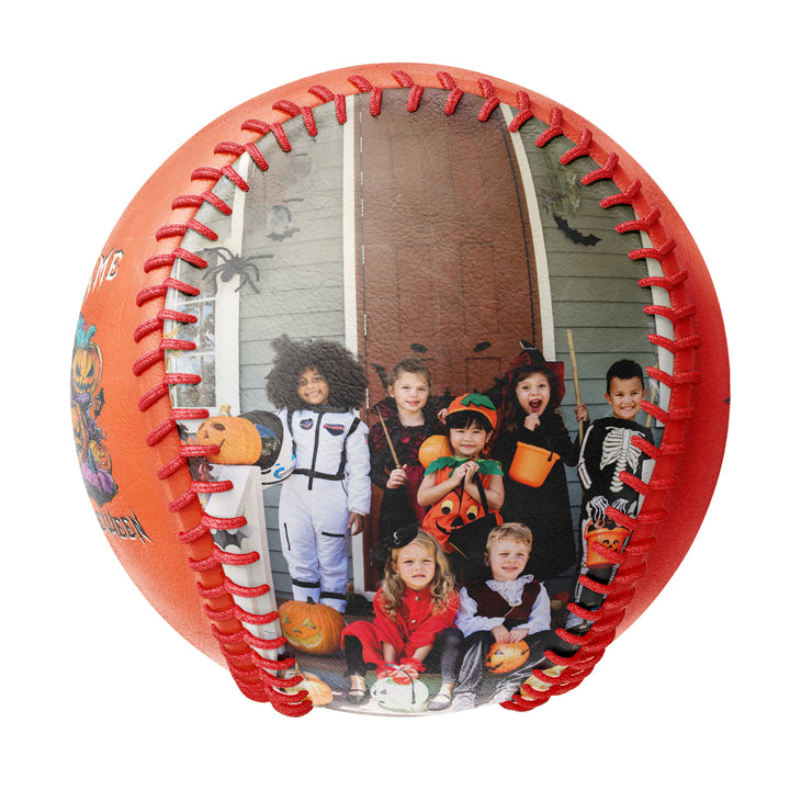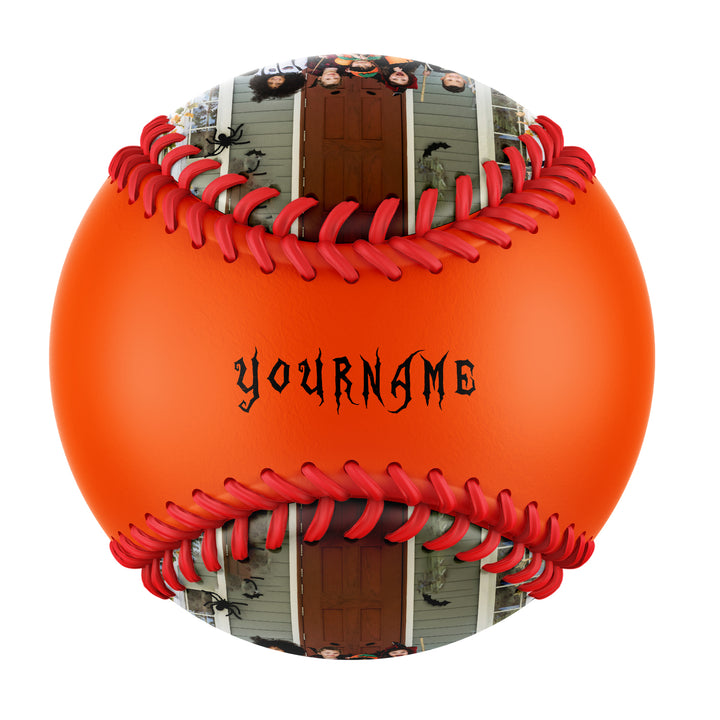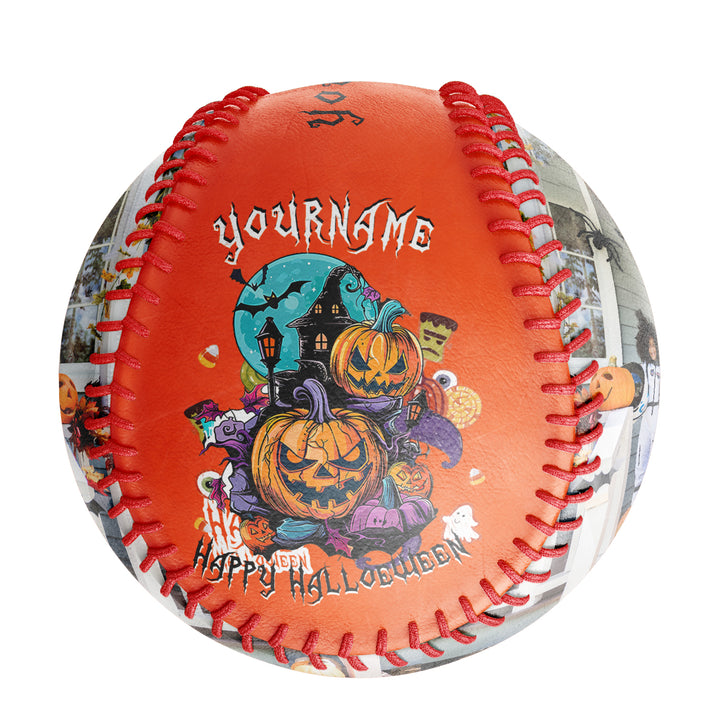 Custom Orange Happy Halloween Pumpkin Bat Photo Baseballs