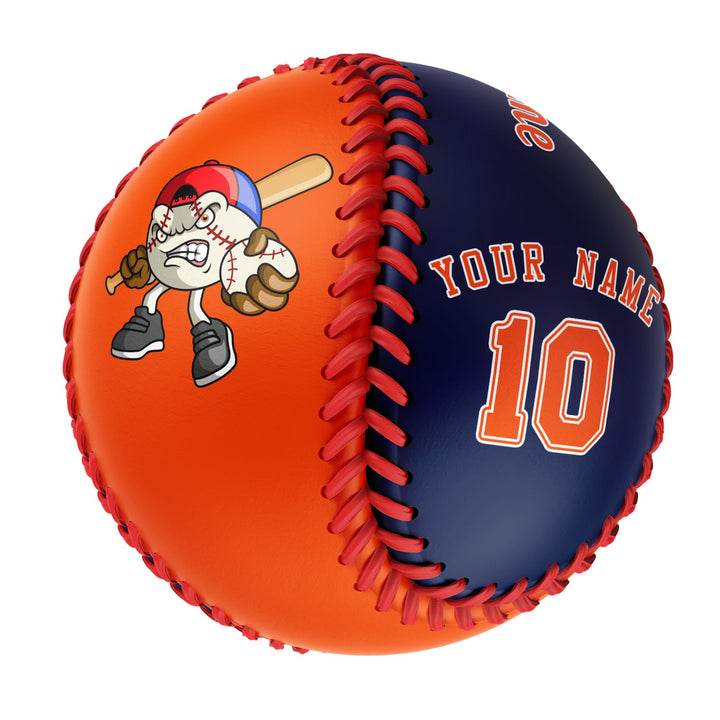 Custom Orange Navy Split Half Leather Orange Authentic Baseballs