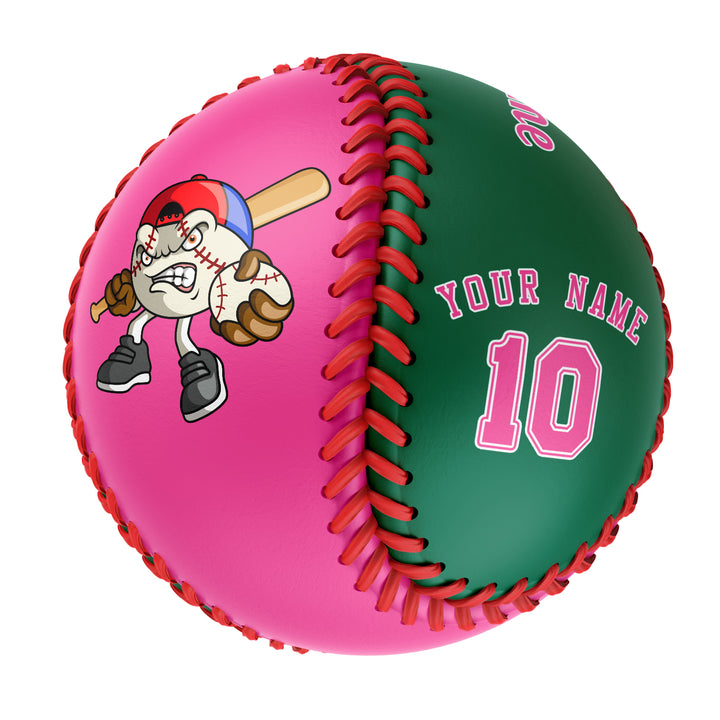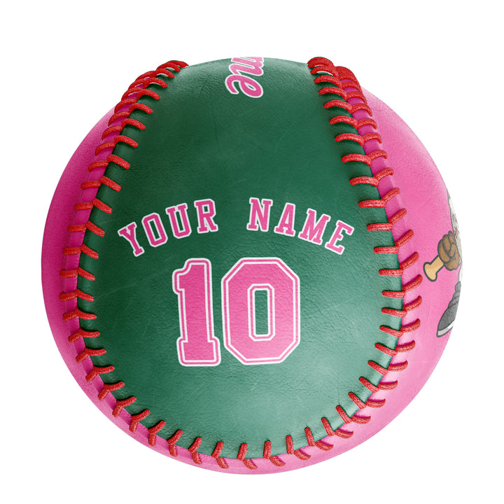 Custom Pink Kelly Green Half Leather Pink Authentic Baseballs