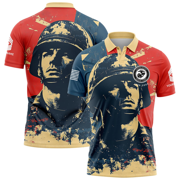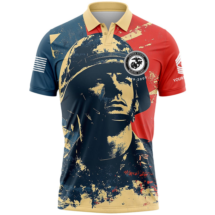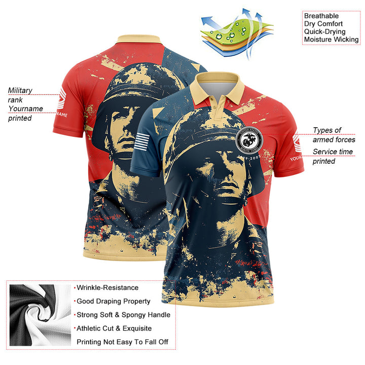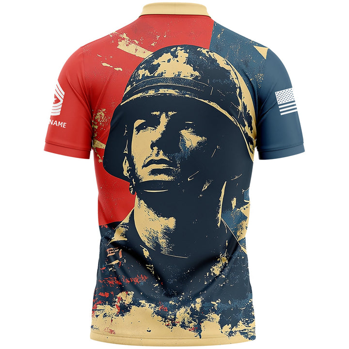 Custom Red Blue American Military Rank Veteran Name Golf Polo Shirt
