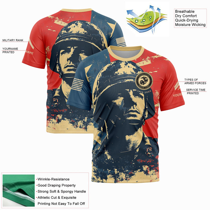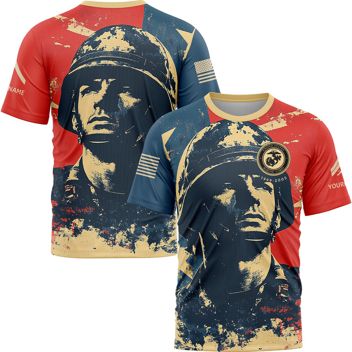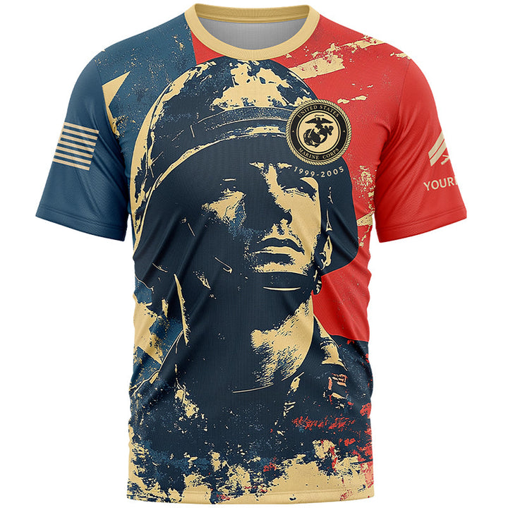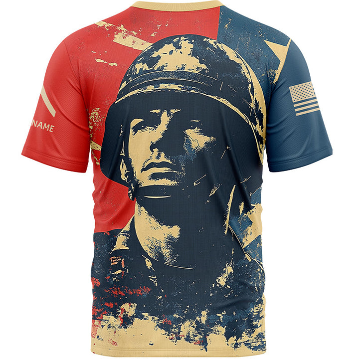 Custom Red Blue American Military Rank Veteran Name T-Shirt