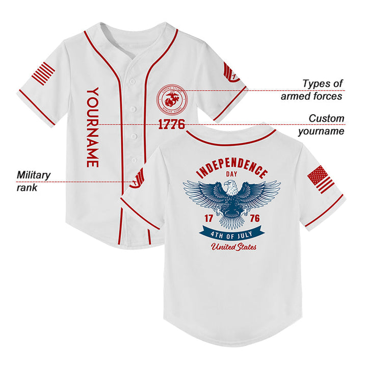 Custom White 1776 Eagle Military Rank Name Independence Day Baseball Jersey