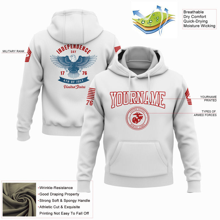 Custom White 1776 Eagle Military Rank Name Independence Day Hoodie | Father's Day Gifts
