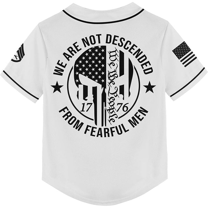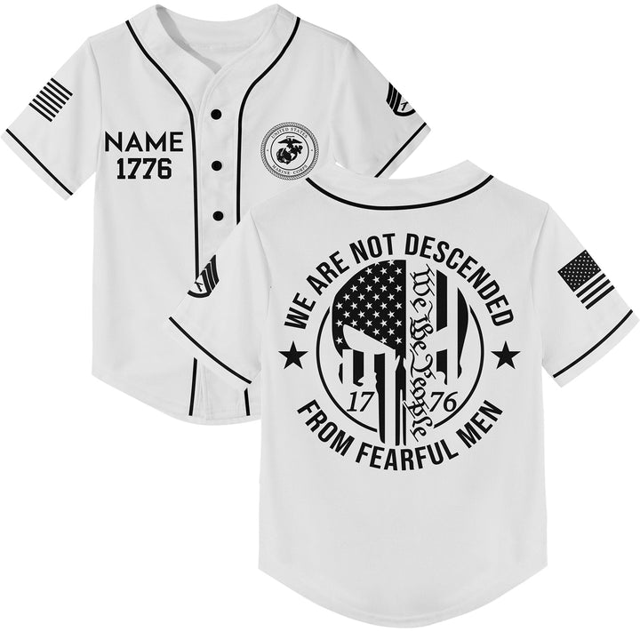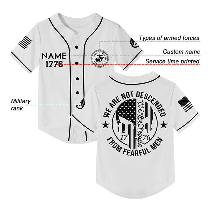Custom White 1776 We Are Not Descended From Fearful Men Military Rank Veteran Name Baseball Jersey