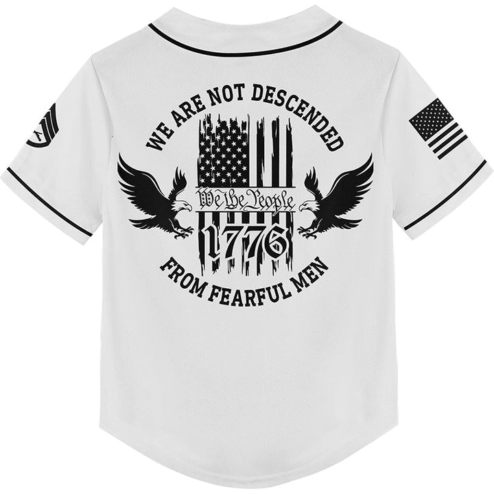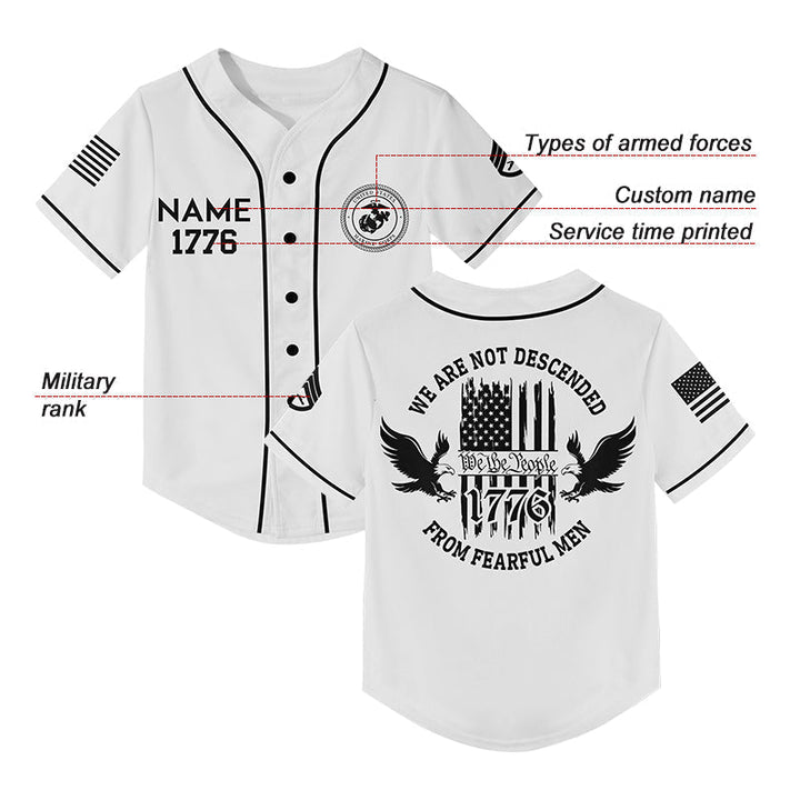 Custom White 1776 We Are Not Descended From Fearful Men Military Rank Veteran Name Baseball Jersey