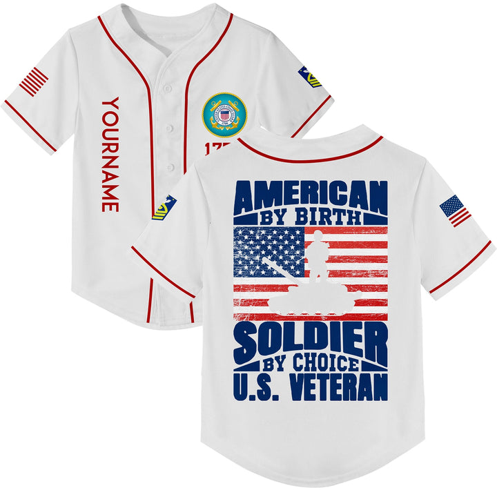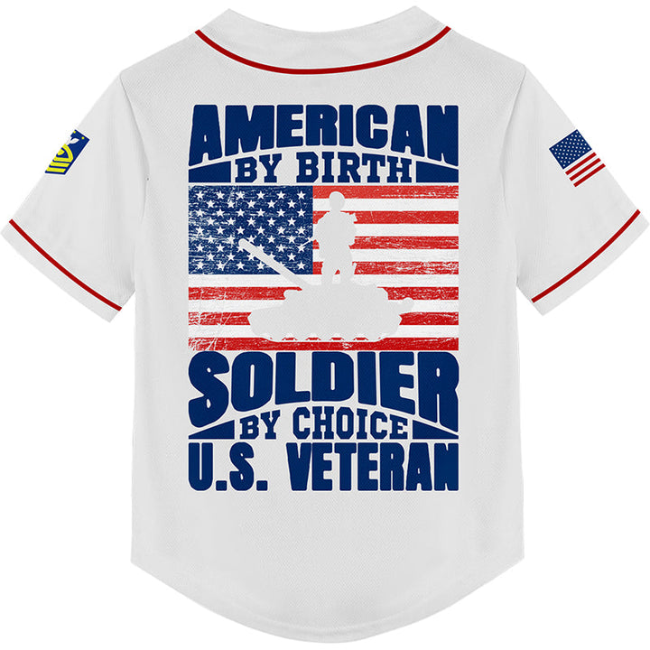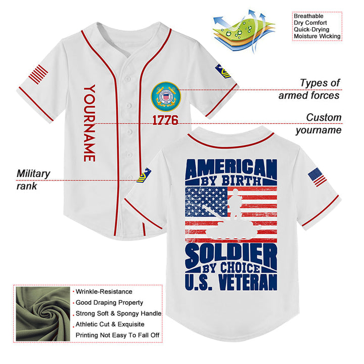 Custom White American By Birth Soldier By Choice 1776 Military Rank Name Veterans Day Baseball Jersey
