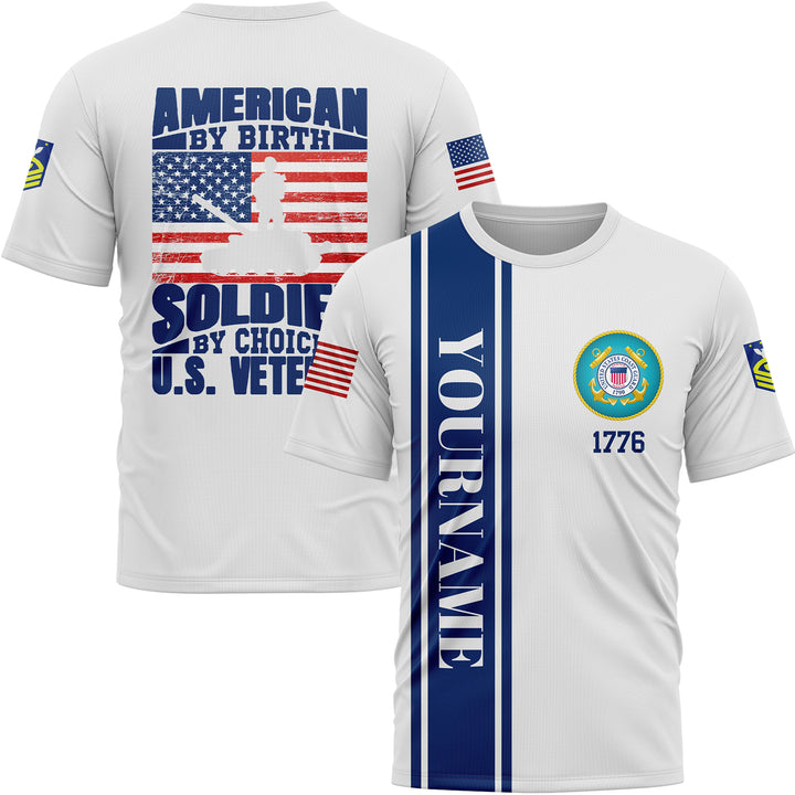 Custom White American By Birth Soldier By Choice 1776 Military Rank Name Veterans Day T-Shirt