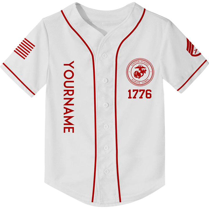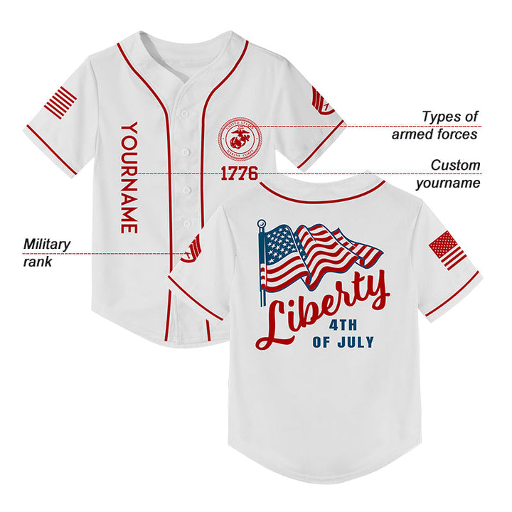 Custom White American Flag Military Rank Name Independence Day Baseball Jersey