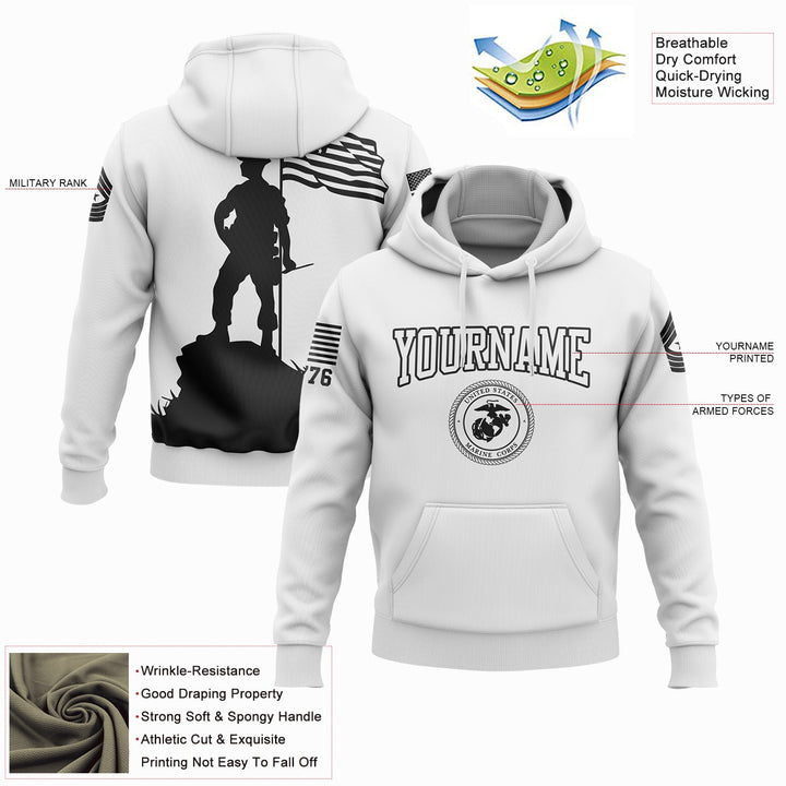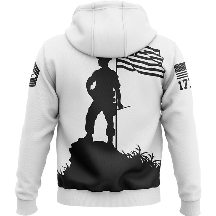 Custom White American Flag Military Rank Name Independence Day Hoodie | Father's Day Gifts
