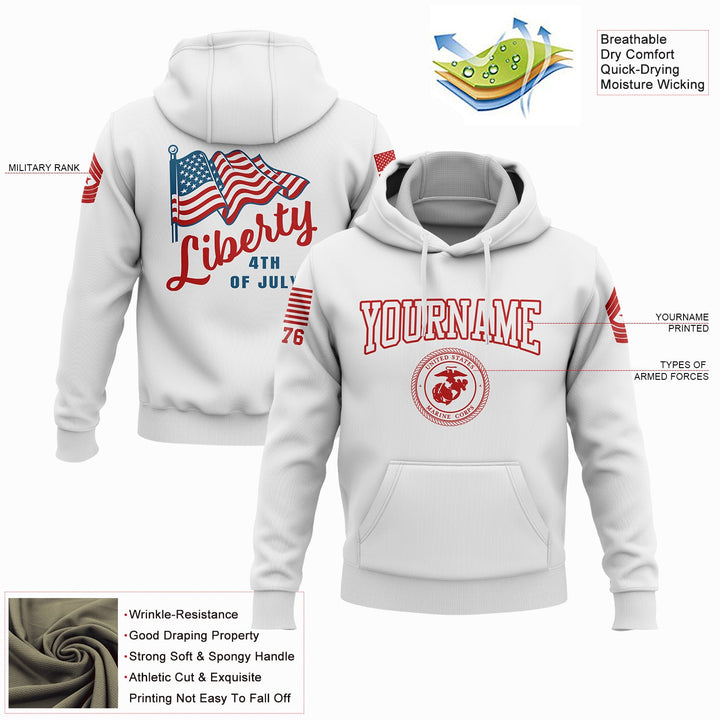 Custom White American Flag Military Rank Name Independence Day Hoodie | Father's Day Gifts