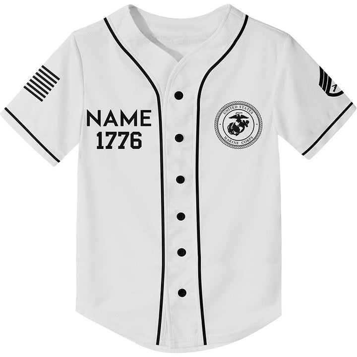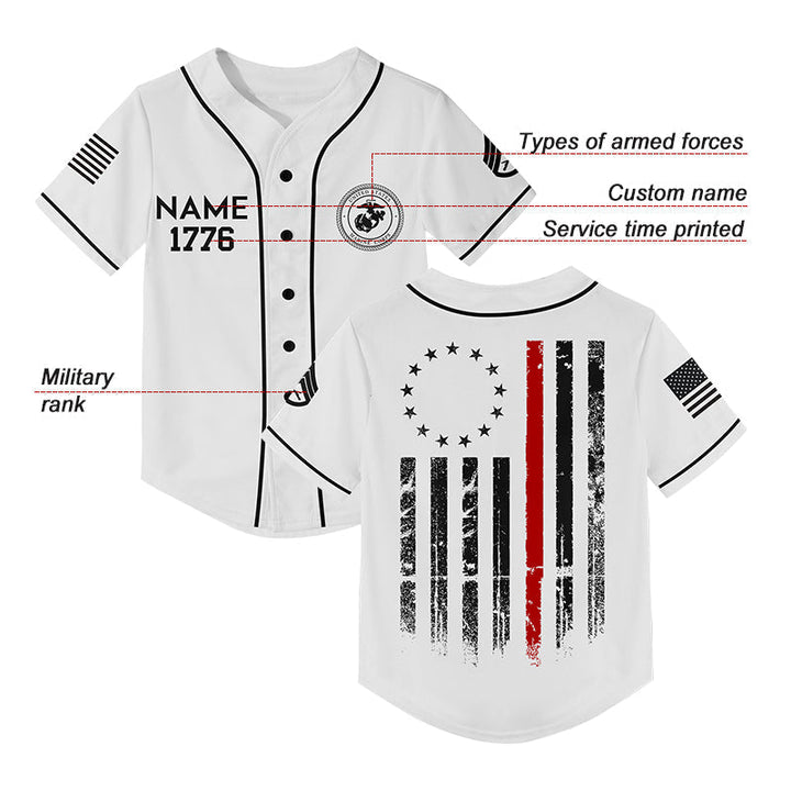 Custom White American Flag Military Rank Veteran Name Baseball Jersey