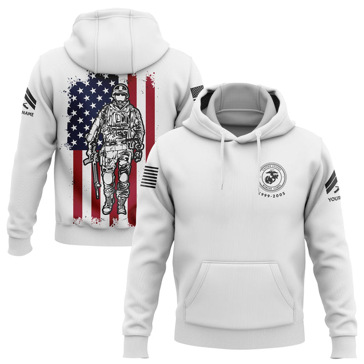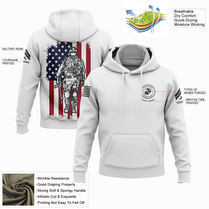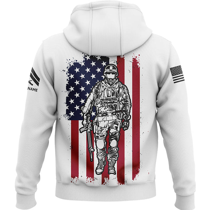 Custom White American Flag Military Rank Veteran Name Hoodie