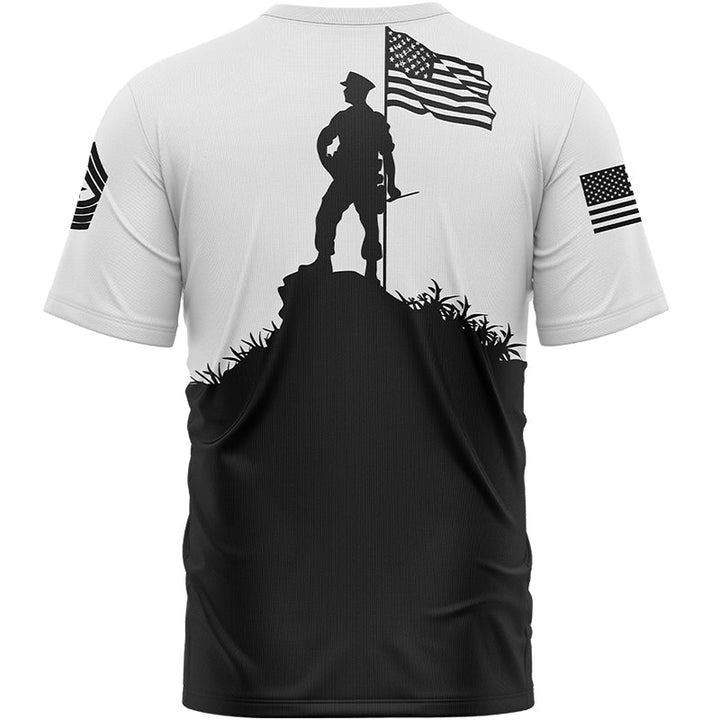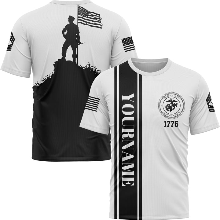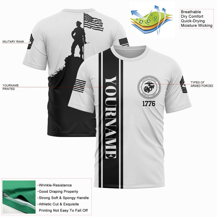 Custom White American Flag Military Rank Name Independence Day T-Shirt