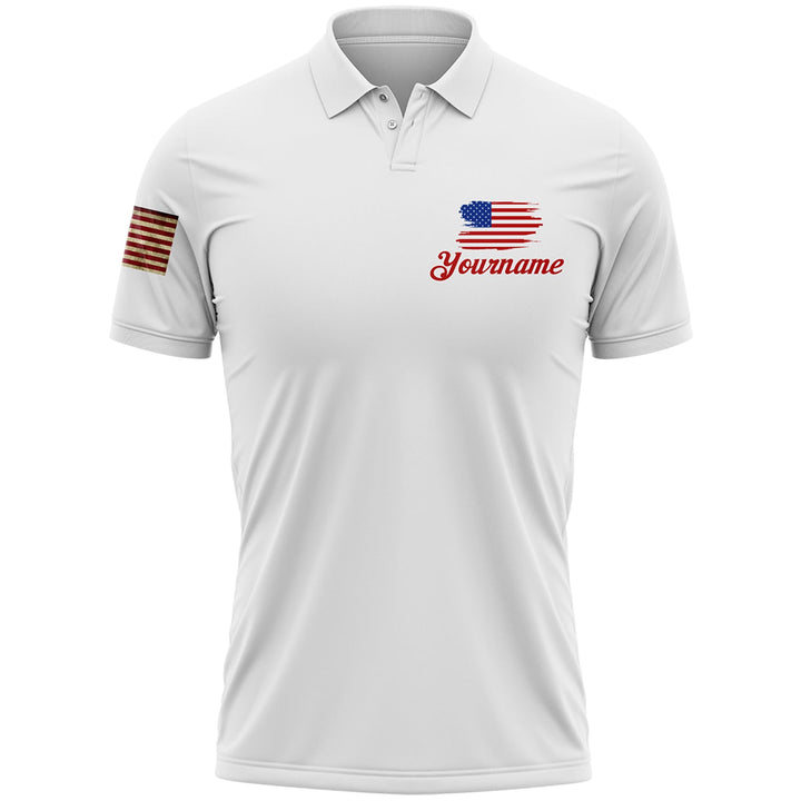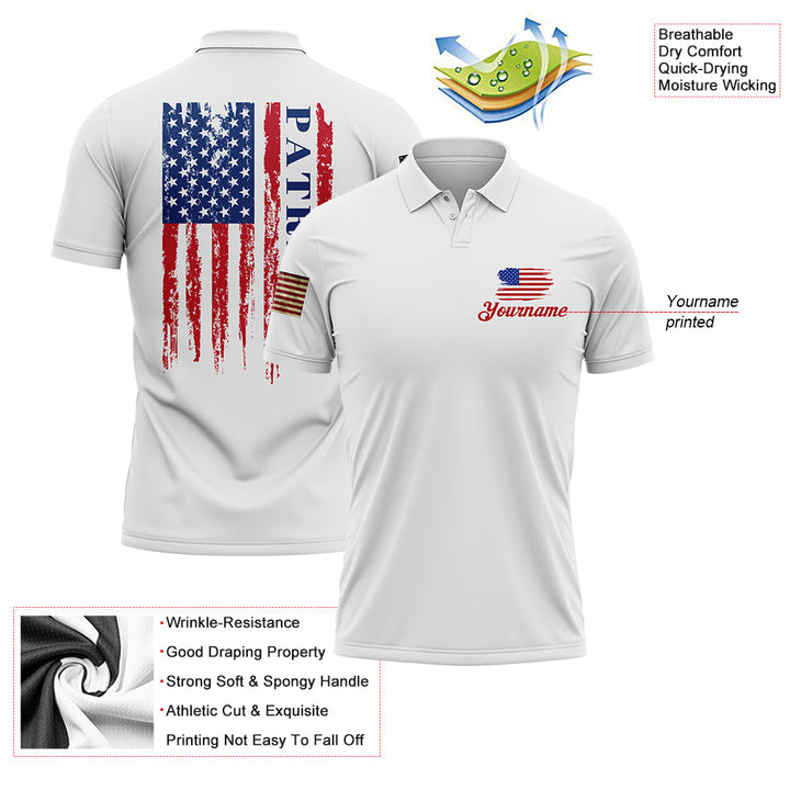 Custom White American Patriot Name Golf Polo Shirt