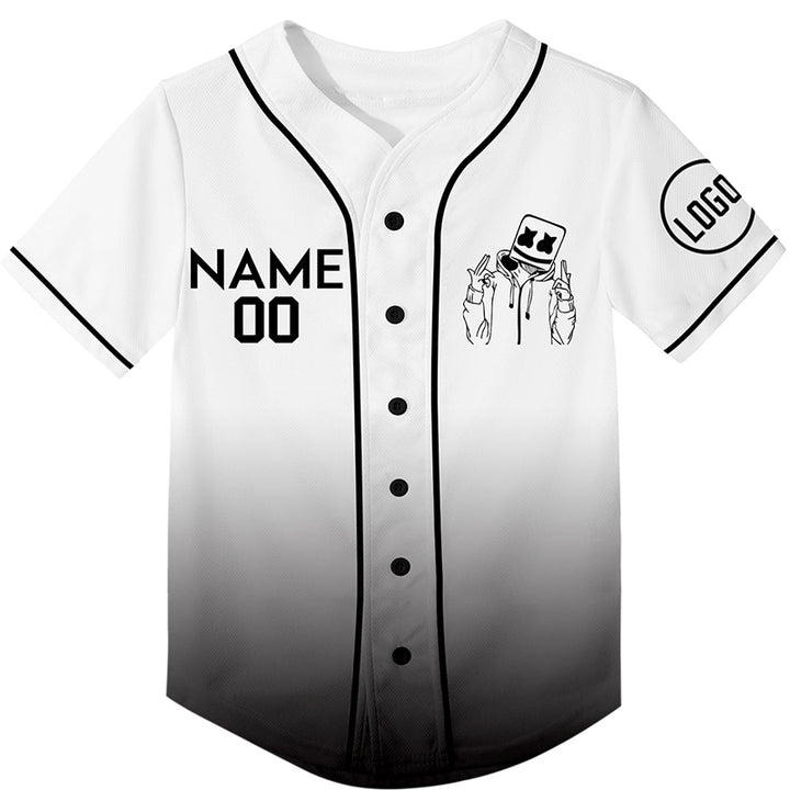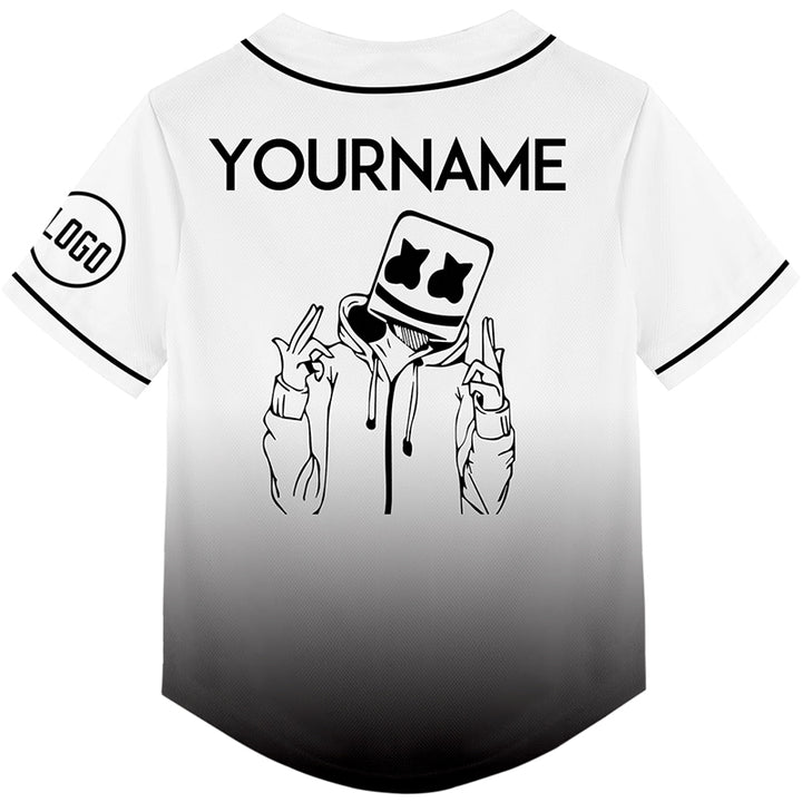 Custom White Black Smiley Face Fade Fashion Cry Rave Baseball Jersey For EDM EDC Festivals