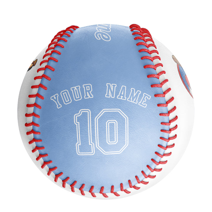 Custom White Blue Half Leather Blue Authentic Baseballs