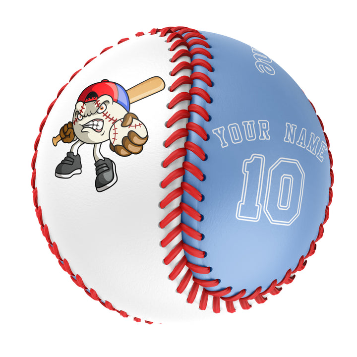 Custom White Blue Half Leather Blue Authentic Baseballs