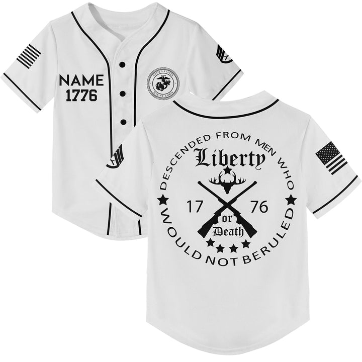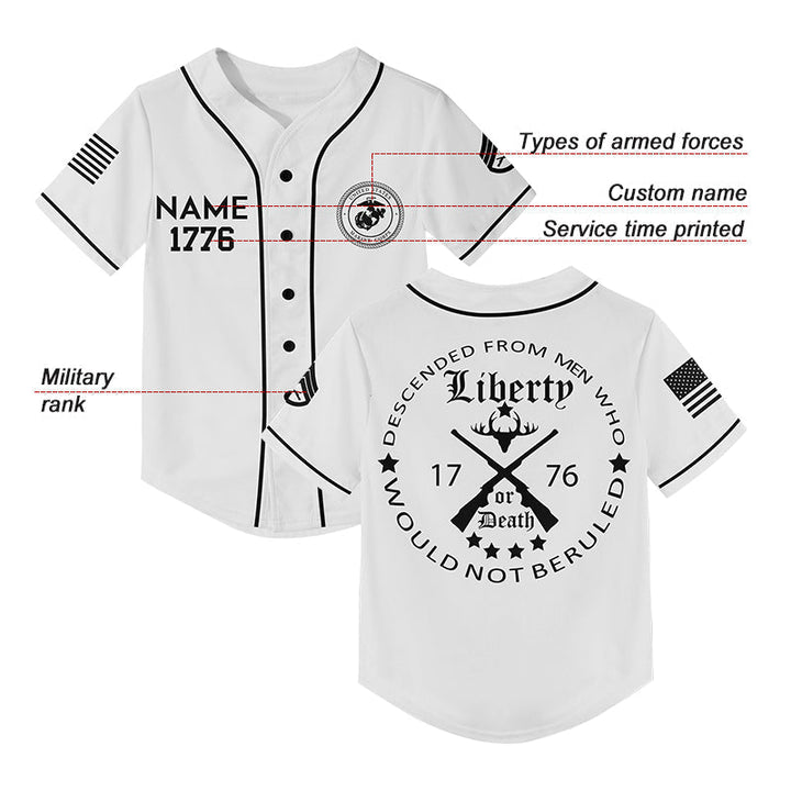 Custom White Descended From Men Who Would Not Beruled 1776 Military Rank Veteran Name Baseball Jersey