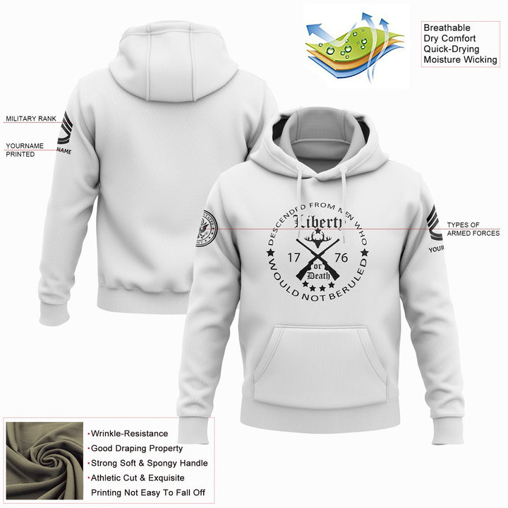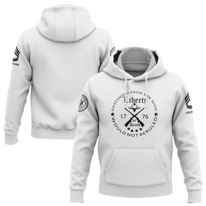 Custom White Descended From Men Who Would Not Beruled 1776 Military Rank Veteran Name Hoodie