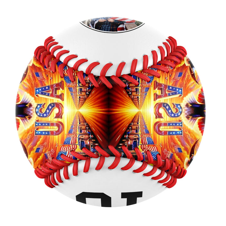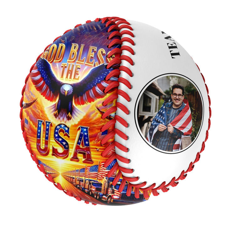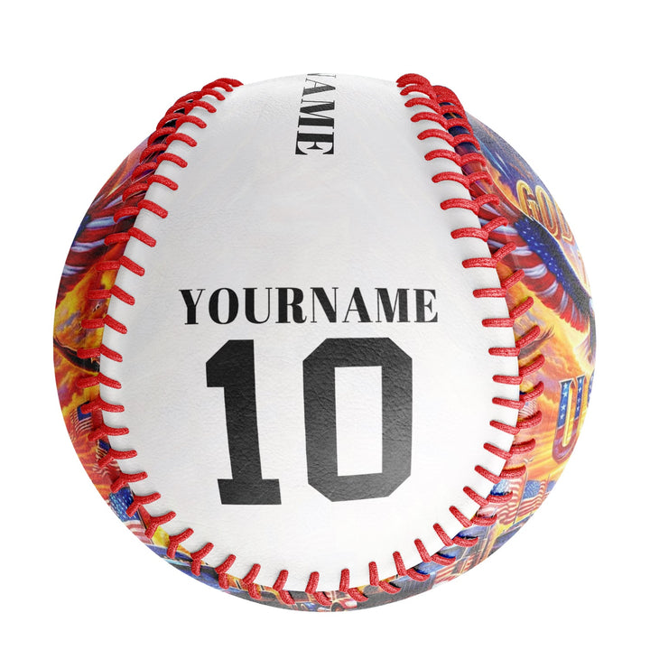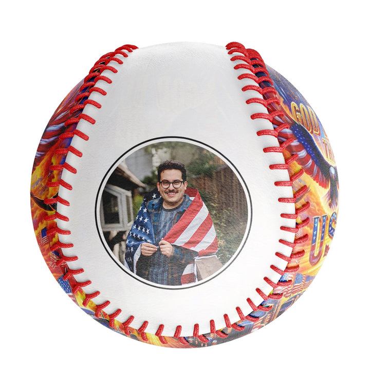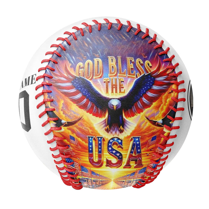 Custom White Gold Bless USA Flag Eagle Photo Baseballs