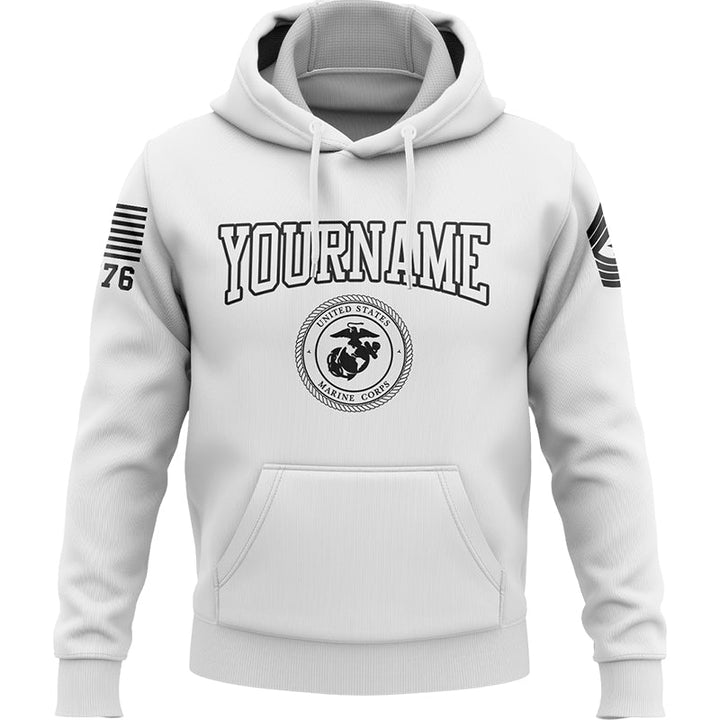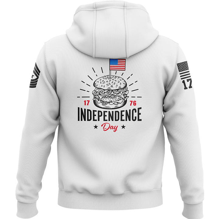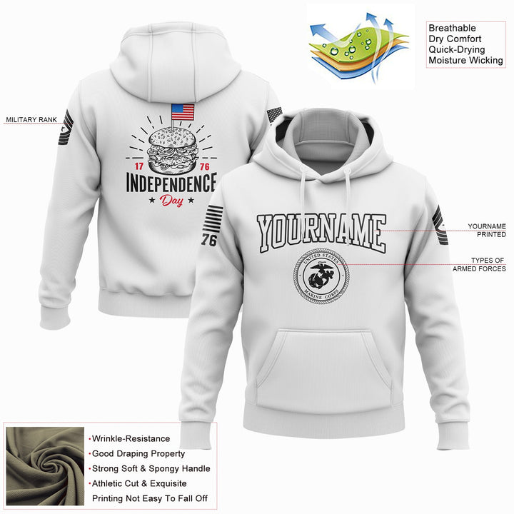 Custom White Hamburger American Flag Military Rank Name Independence Day Hoodie | Father's Day Gifts