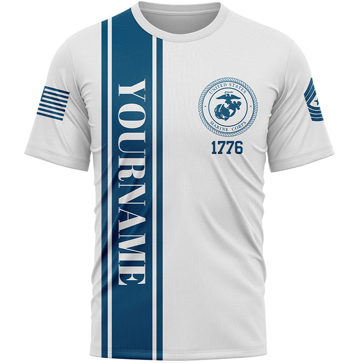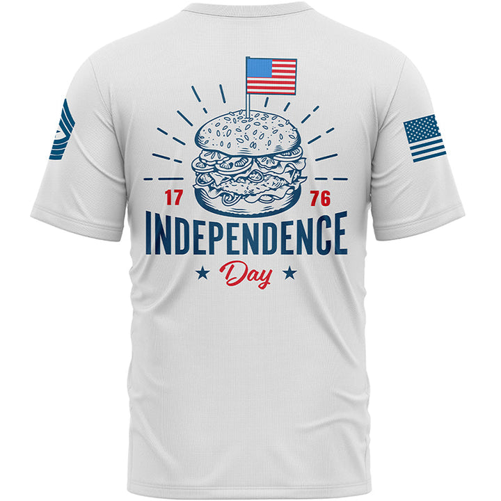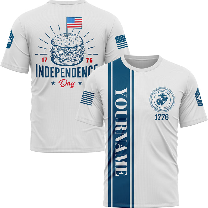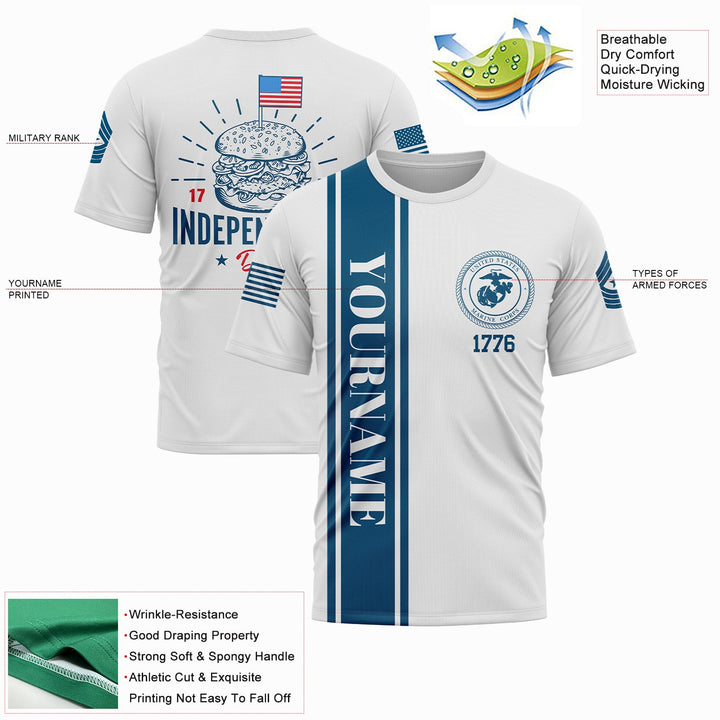 Custom White Hamburger American Flag Military Rank Name Independence Day T-Shirt