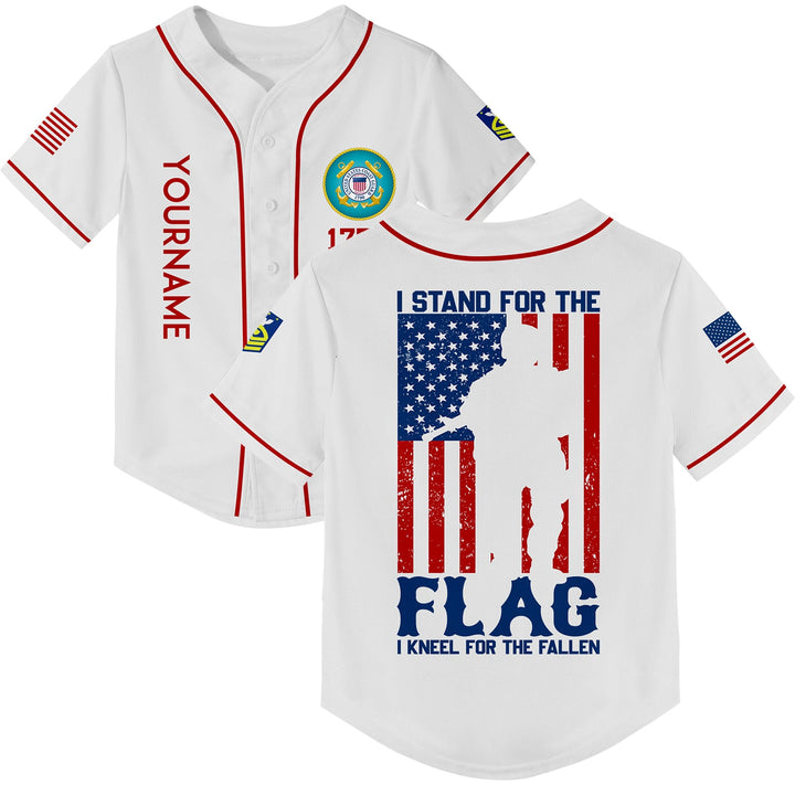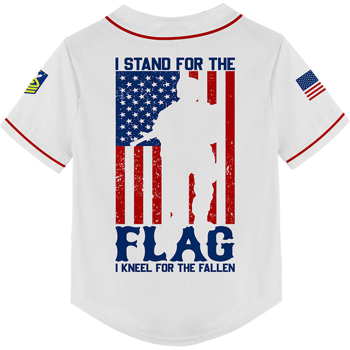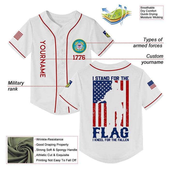 Custom White I Stand For Flag I Kneel For The Fallen 1776 Military Rank Name Veterans Day Baseball Jersey