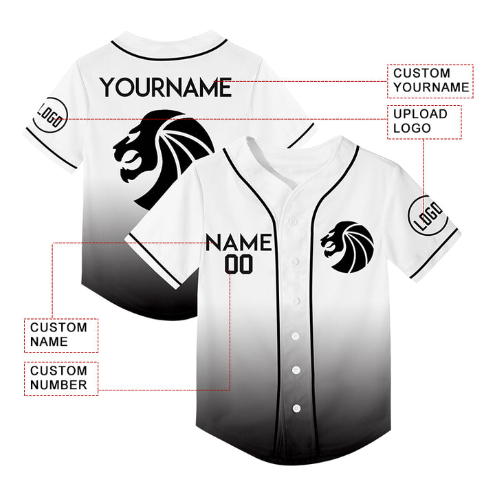 Custom White Black Fade Fashion Lion Flower Rave Baseball Jersey For EDM EDC Festivals