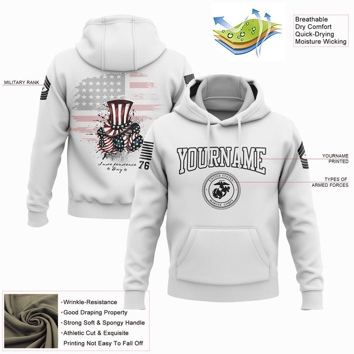 Custom White Magic Hat American Flag Military Rank Name Independence Day Hoodie | Father's Day Gifts