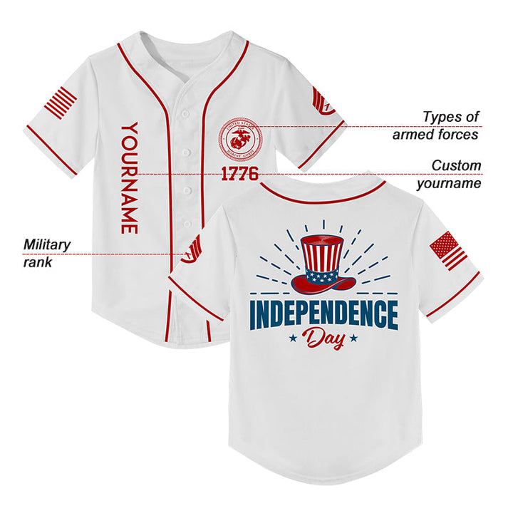 Custom White Magic Hat Military Rank Name Independence Day Baseball Jersey