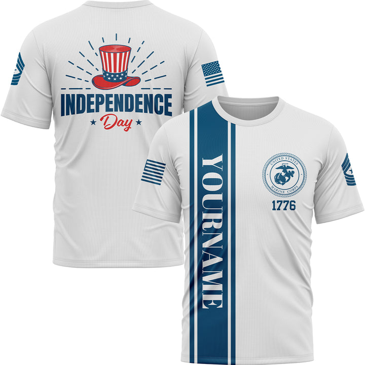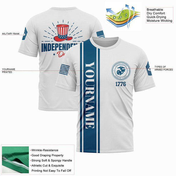 Custom White Magic Hat Military Rank Name Independence Day T-Shirt