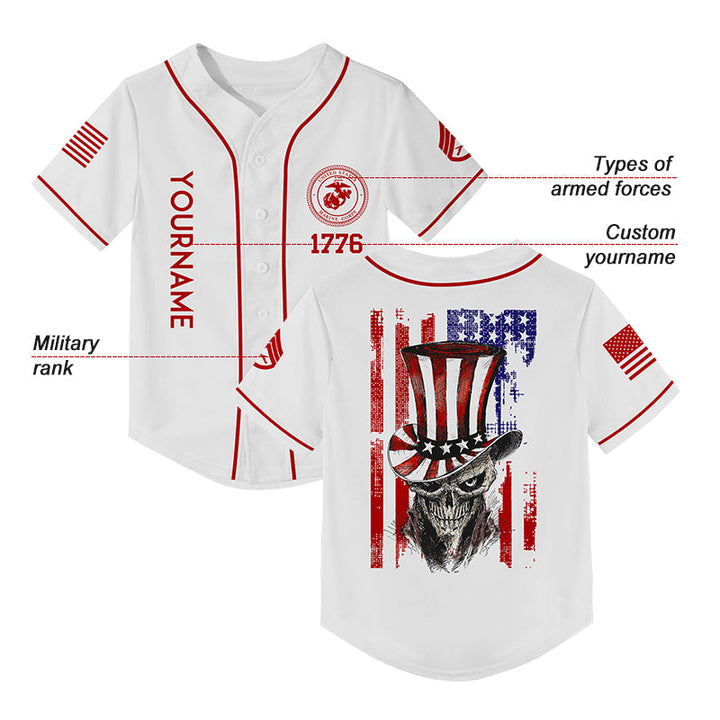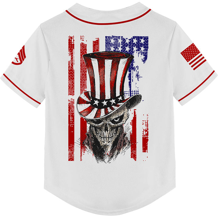 Custom White Magician Skull Military Rank Name Independence Day Baseball Jersey