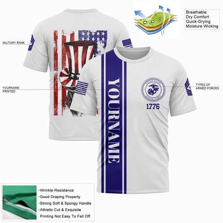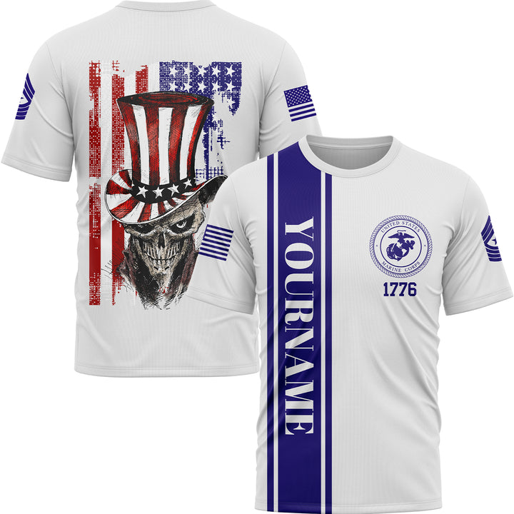 Custom White Magician Skull Military Rank Name Independence Day T-Shirt