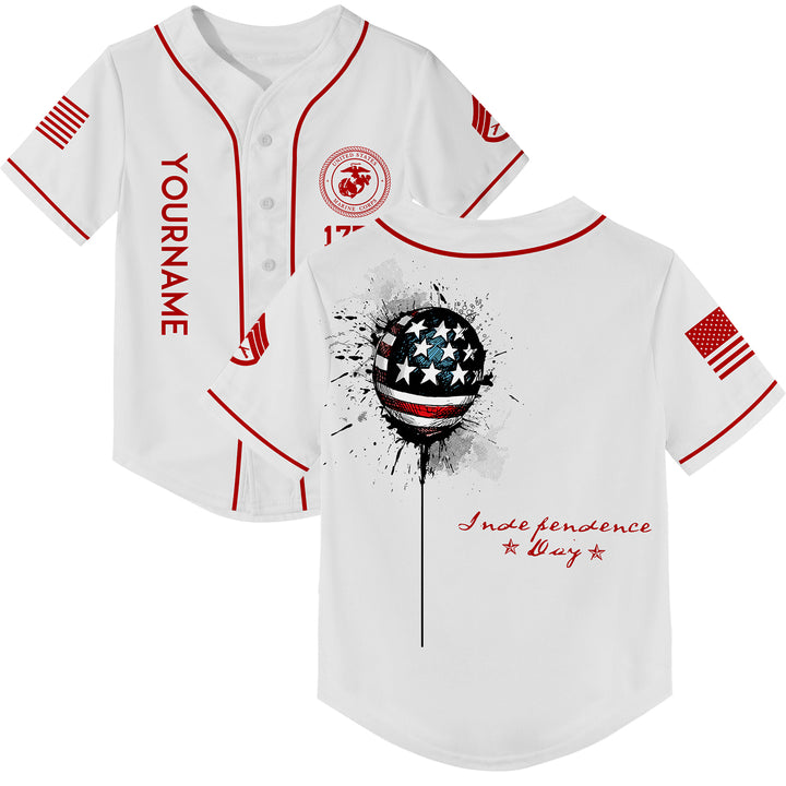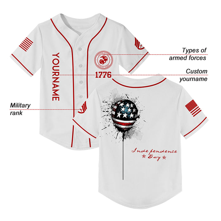 Custom White Military Rank Name Independence Day Baseball Jersey