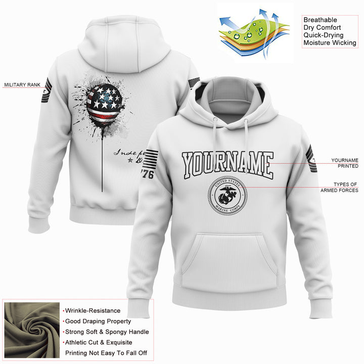 Custom White Military Rank Name Independence Day Hoodie | Father's Day Gifts