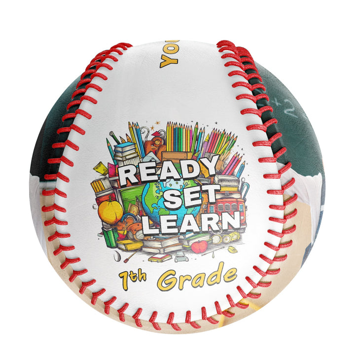 Custom White Ready Set Learn Starting School 7th Grade Photo Baseballs