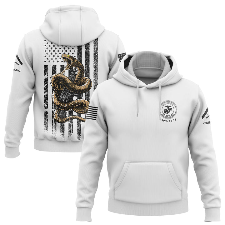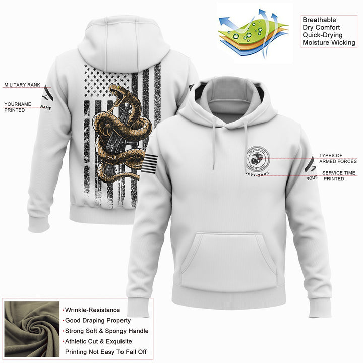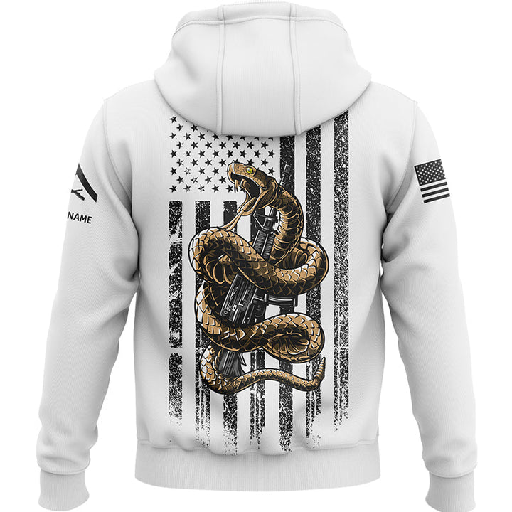 Custom White Snake American Flag Military Rank Veteran Name Memorial Day Hoodie