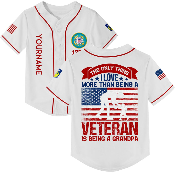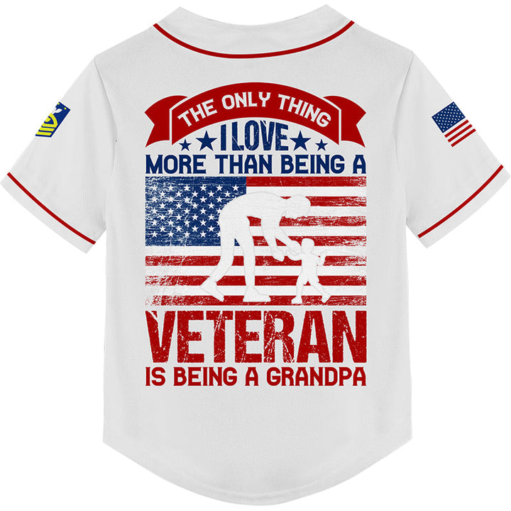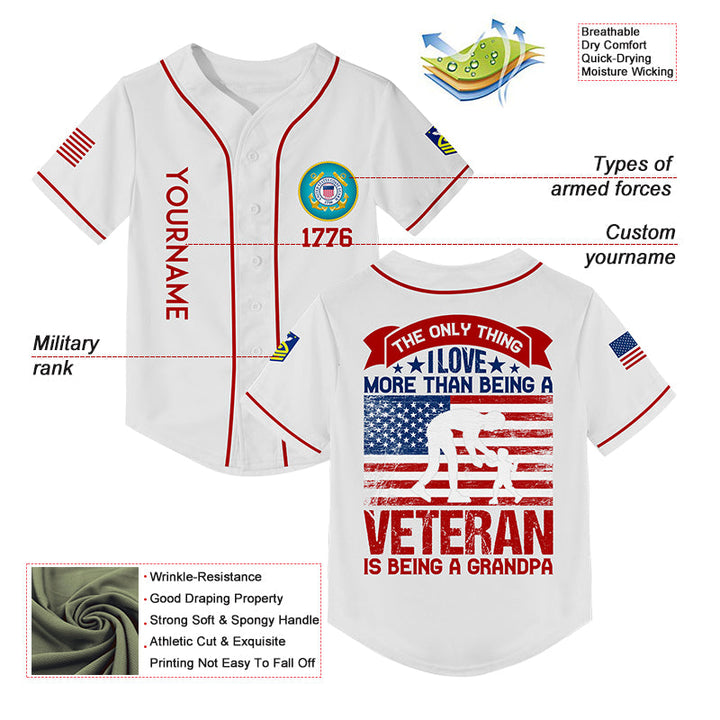 Custom White The Only Thing I Love More Than Being A Veteran Is Being A Grandpa 1776 Flag Military Rank Name Veterans Day Baseball Jersey