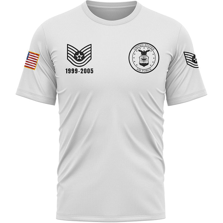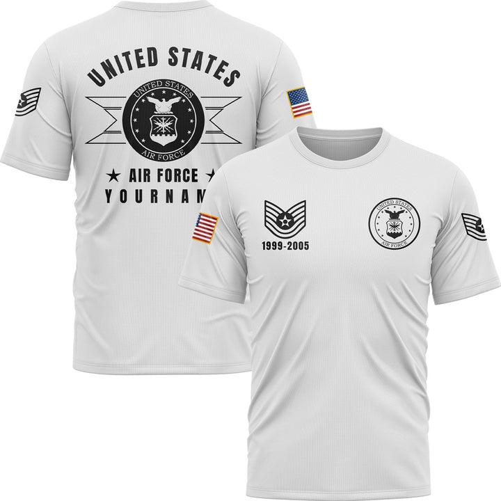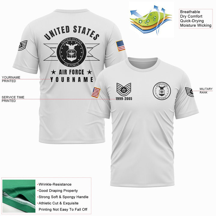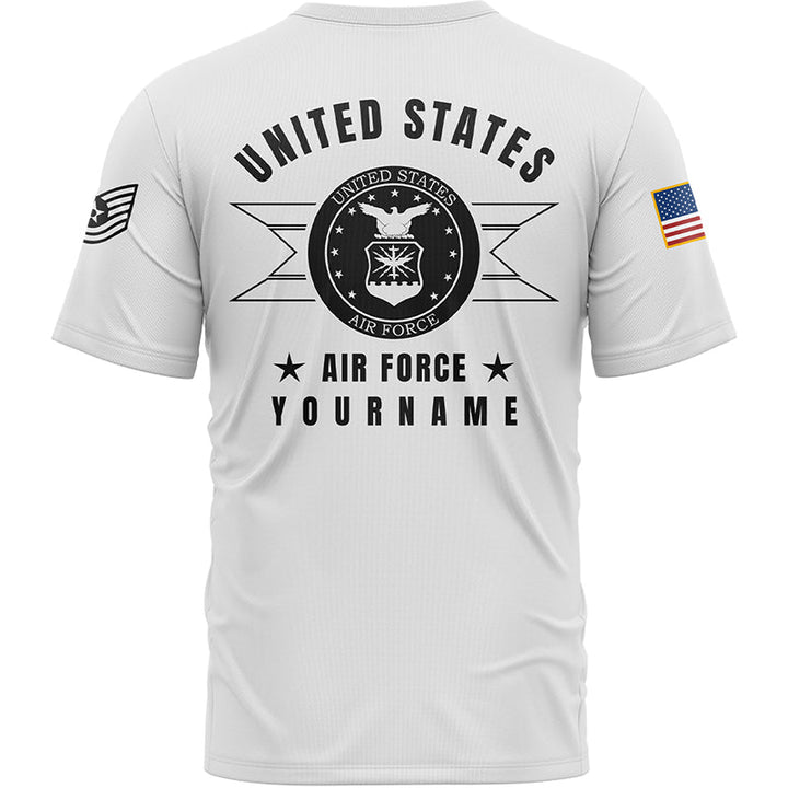 Custom White U.S Air Force Military Rank Veteran Name T-Shirt