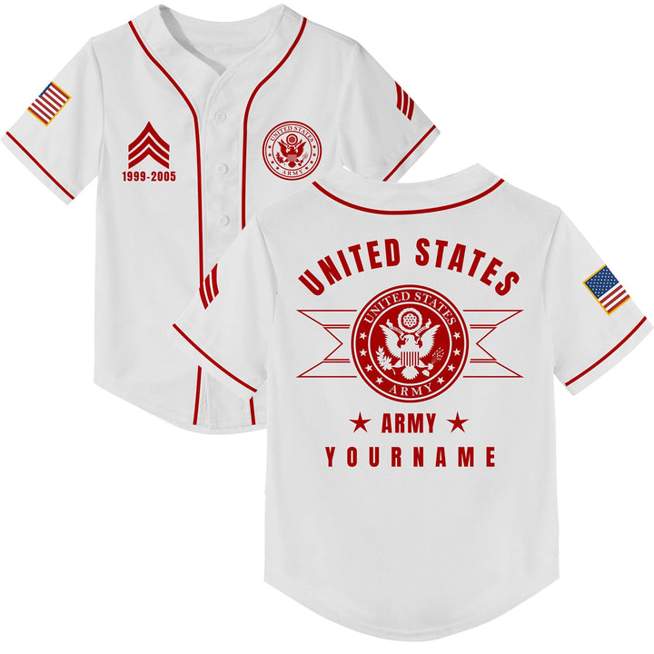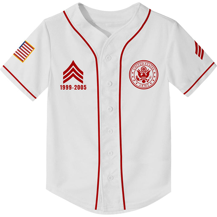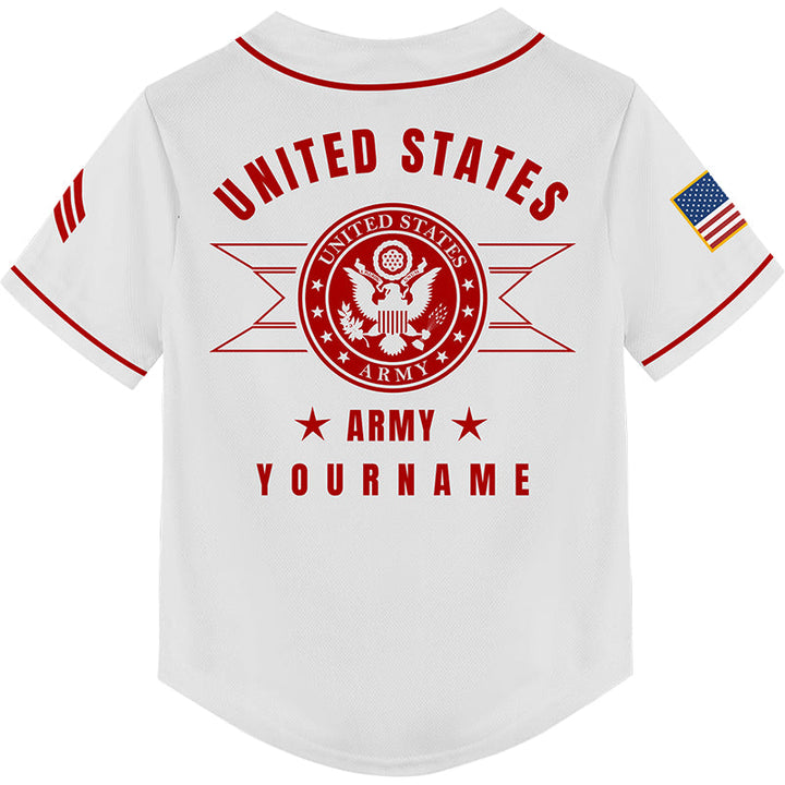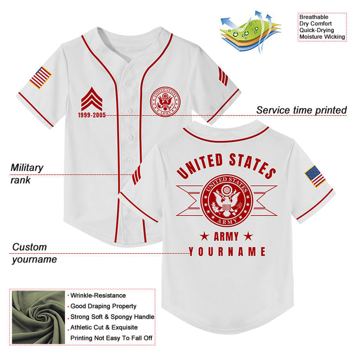 Custom White U.S Army Military Rank Veteran Name Baseball Jersey