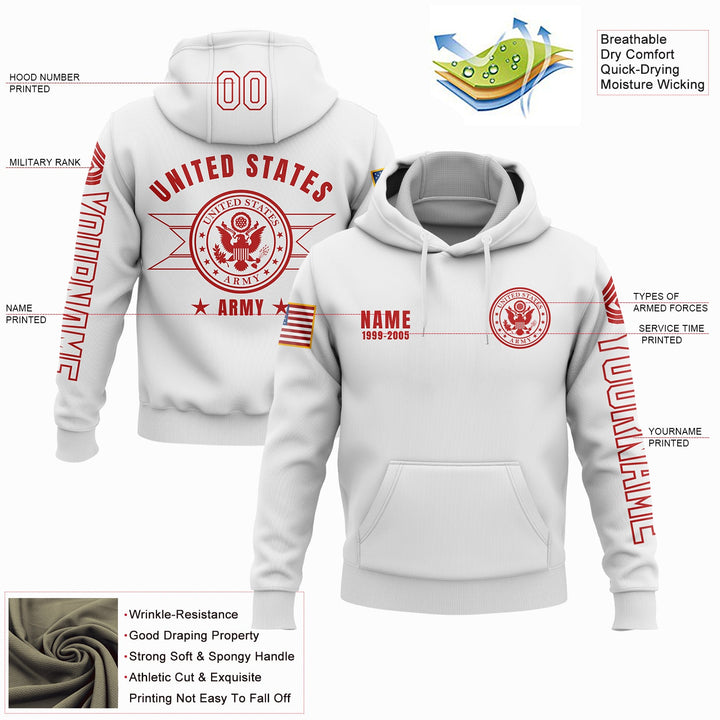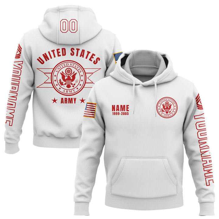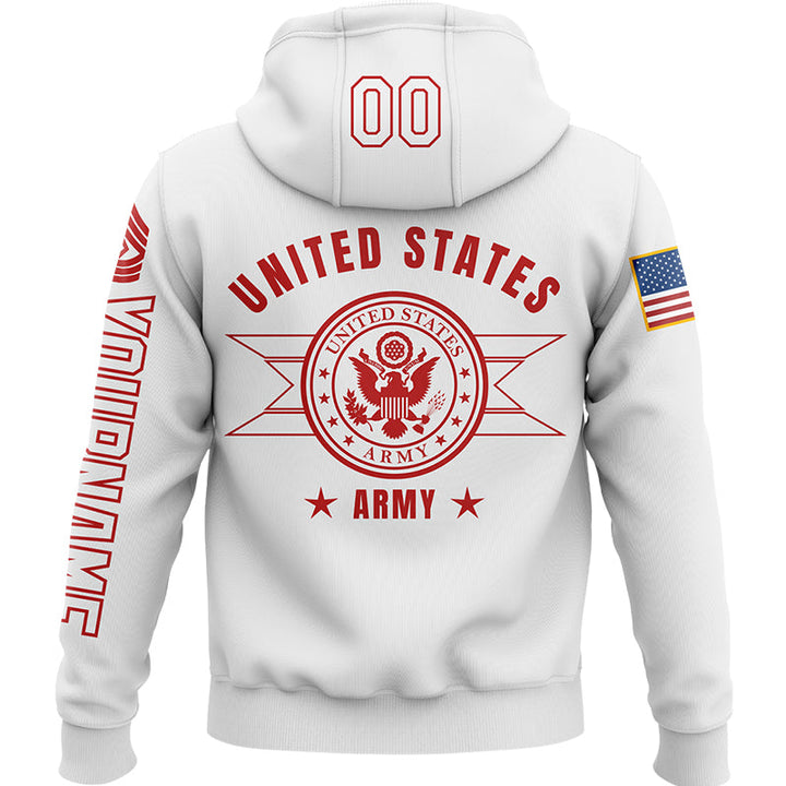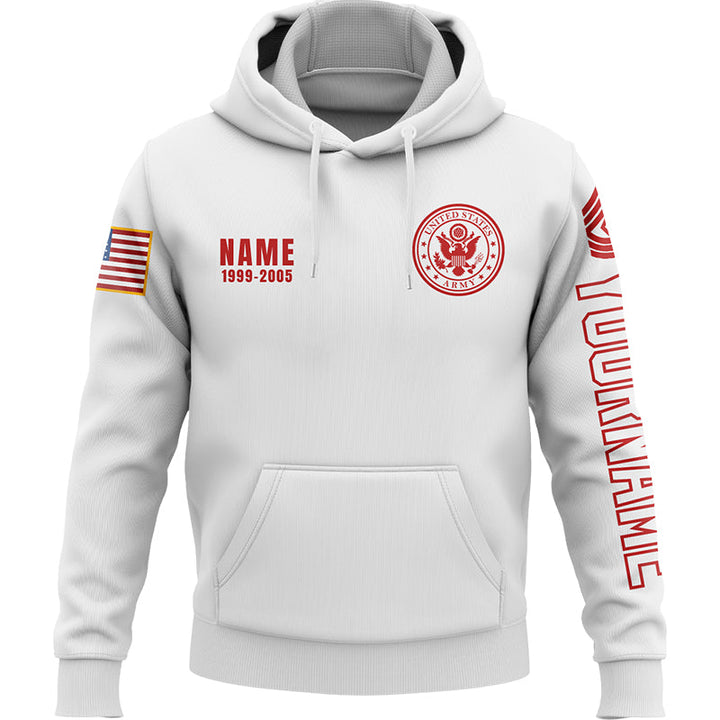 Custom White U.S Army Military Rank Veteran Name Hoodie