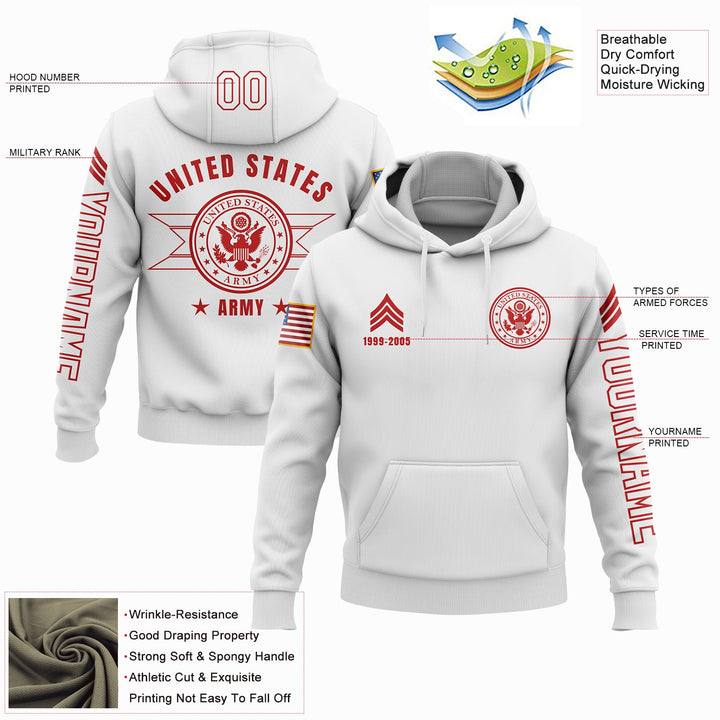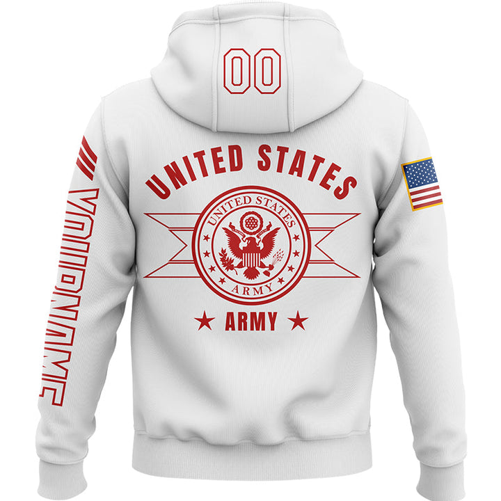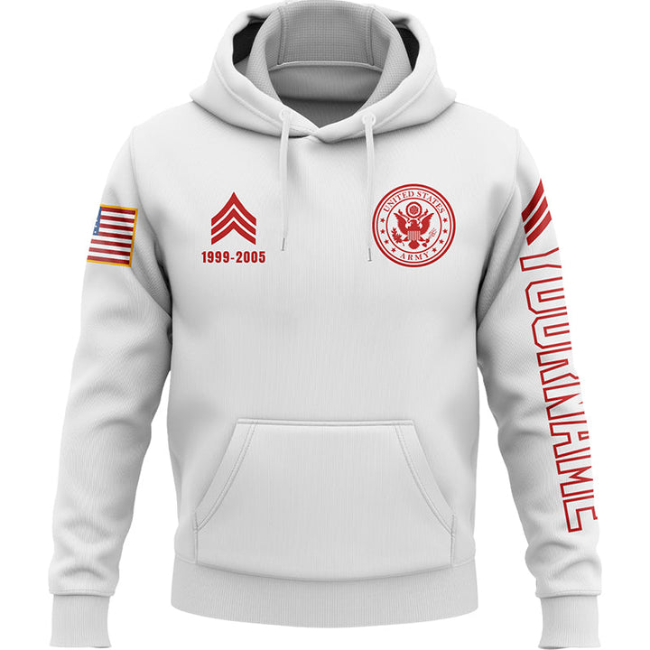 Custom White U.S Army Military Rank Veteran Name Number Hoodie