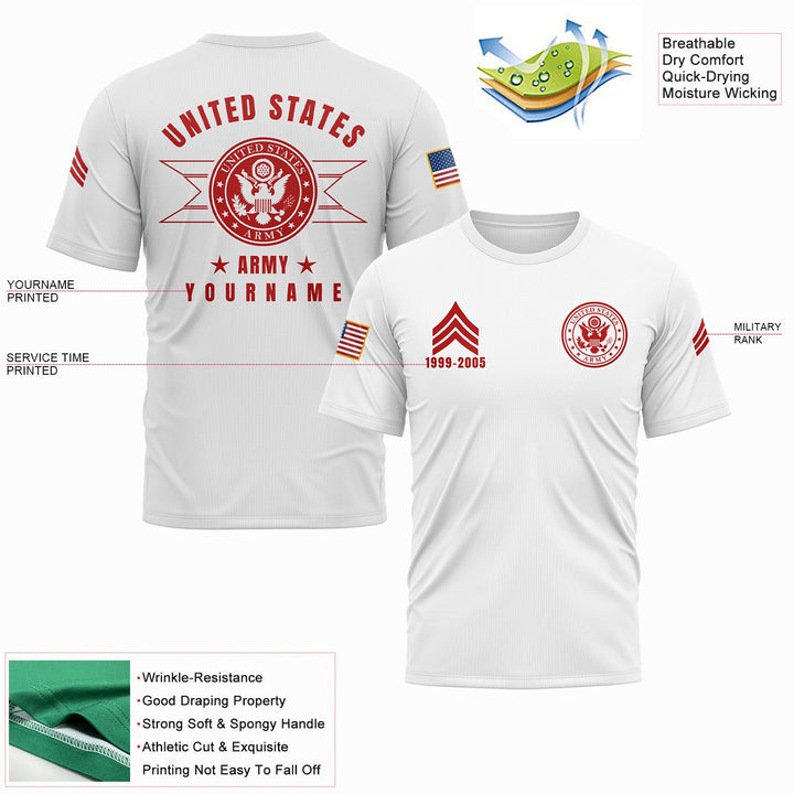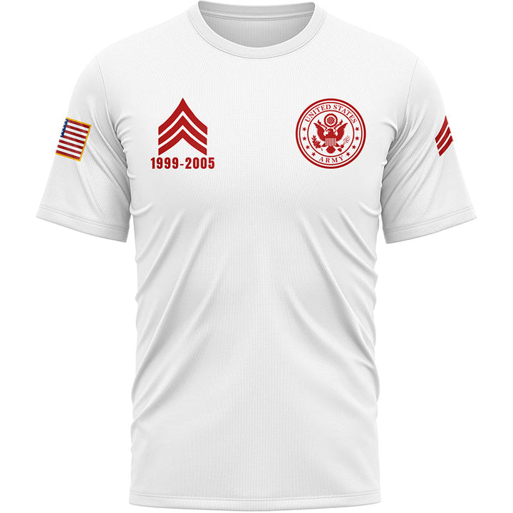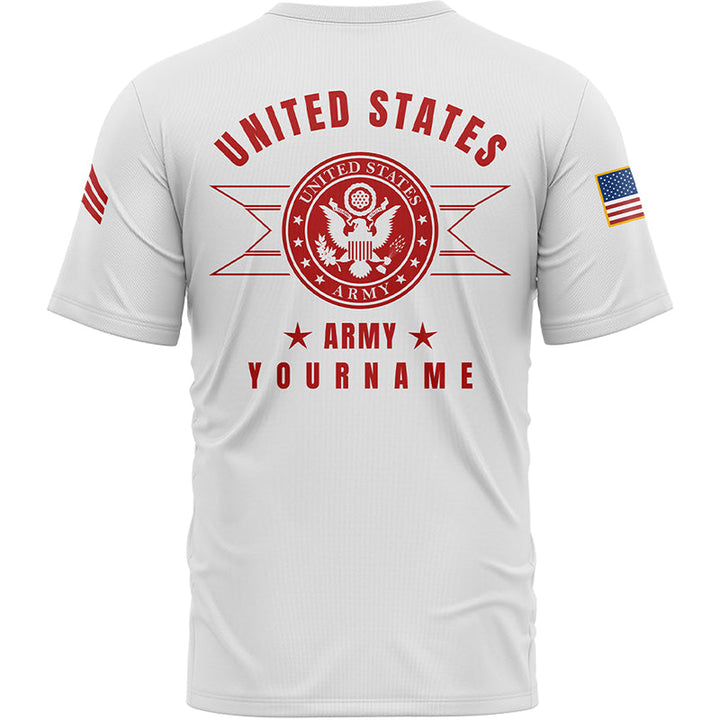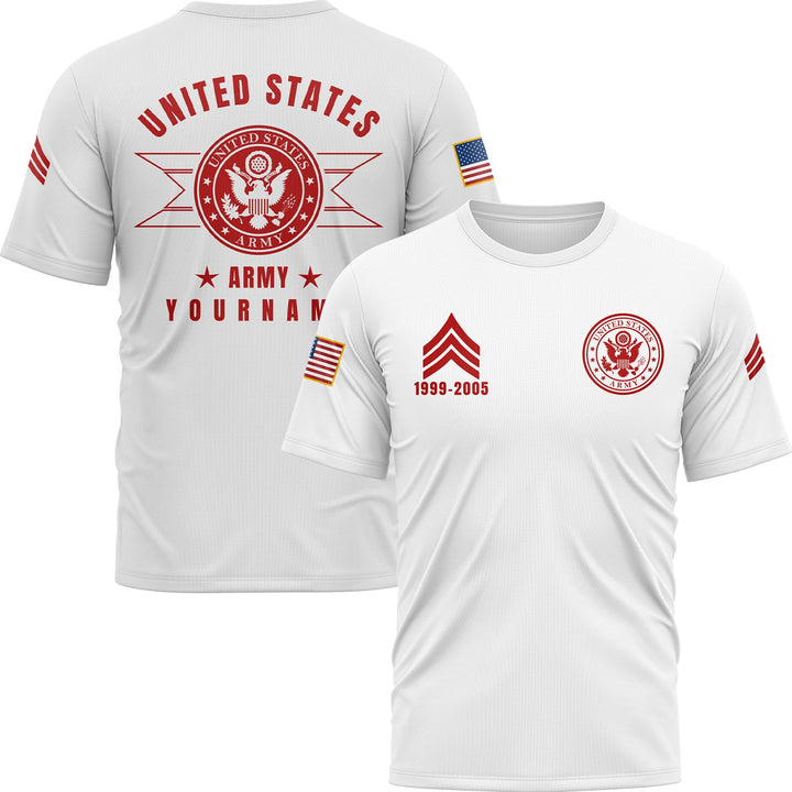 Custom White U.S Army Military Rank Veteran Name T-Shirt